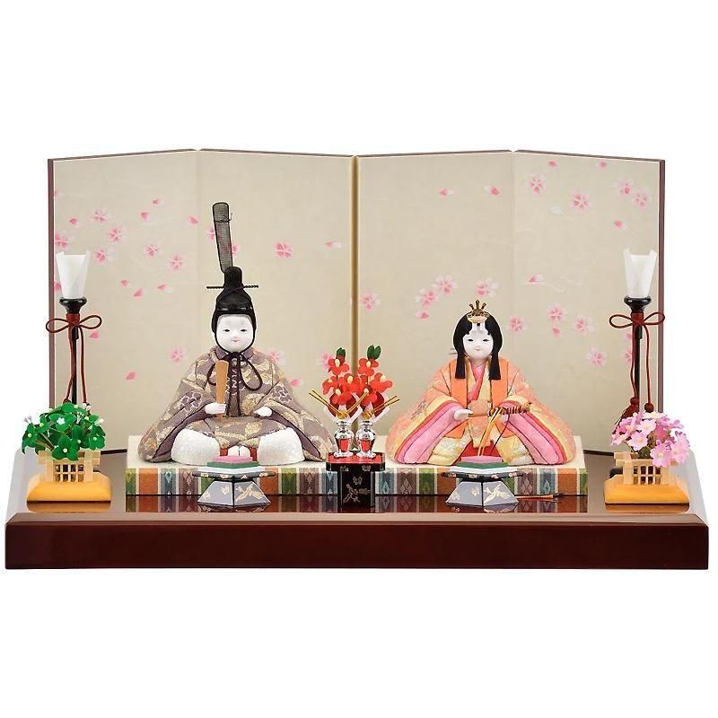 とってもコンパクトで笑顔がかわいい入れ目の木目込人形です。 見るものに安らぎと温もりを与える木目込人形はいつの時代も変わらぬ人気のお雛様です。 花柄の和紙屏風がアクセントになっています。