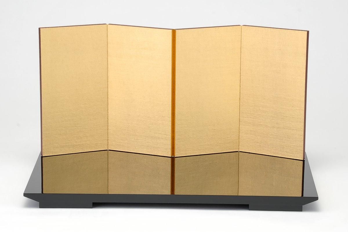 シンプルですが繊維状に波打つような金屏風も好評をいただいております。 小さくても手を抜かない小出松寿の作風には感心させられます。