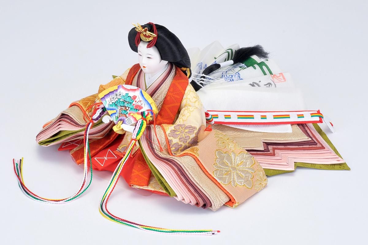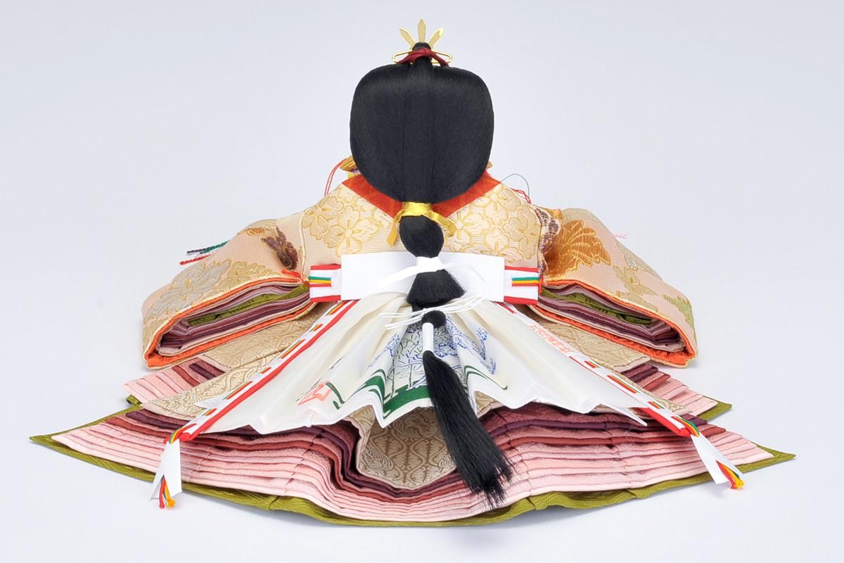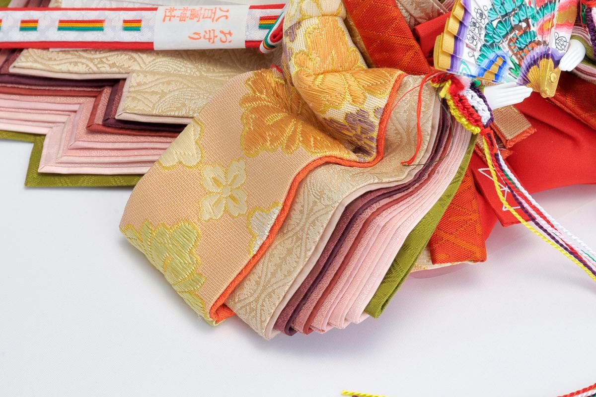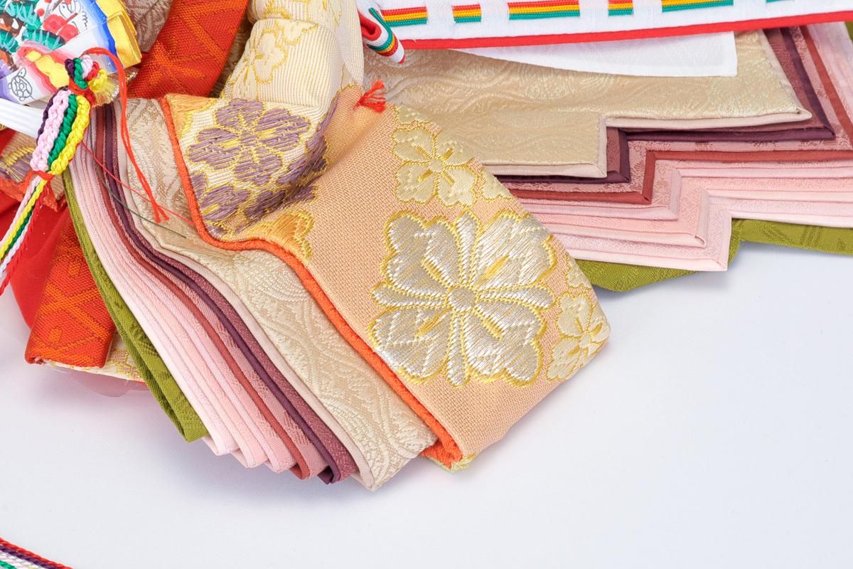 こちらのお雛様の衣裳は実際にご覧いただくと優雅さと気品が感じられる