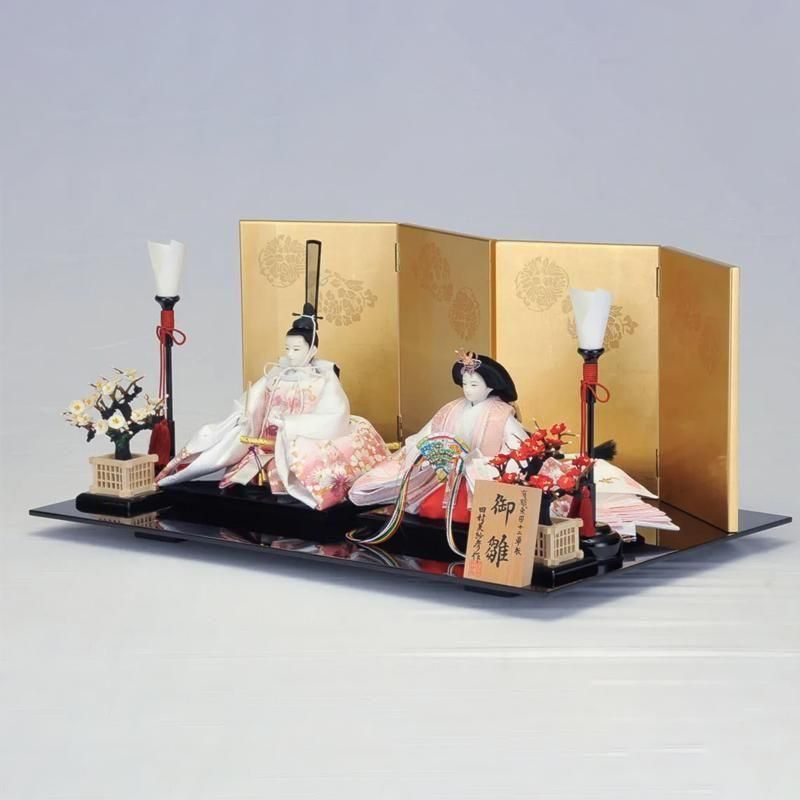大柄の刺繍が目を引きます。 高級会津塗りの屏風と飾り台を組み合わせたおしゃれなセットです。 繭玉(蚕の繭からつくった)の紅白梅は大変手間がかかる高級品です。