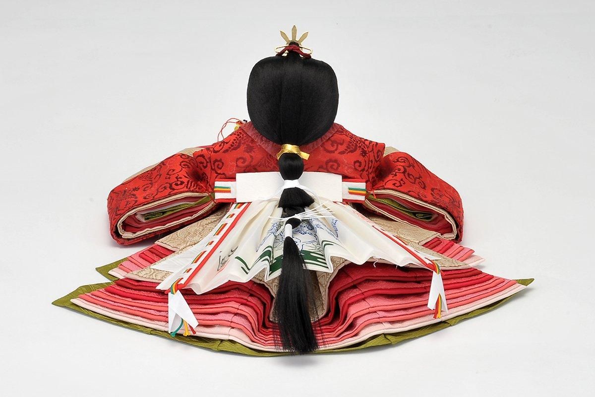 本物に限りなく近い仕立て方、着せ方で創られおり、平安王朝の雅、その優美さを鮮やかに余すことなく再現しています。 お殿様、お姫様ともに鳳凰の柄のお衣裳を身にまとっています。