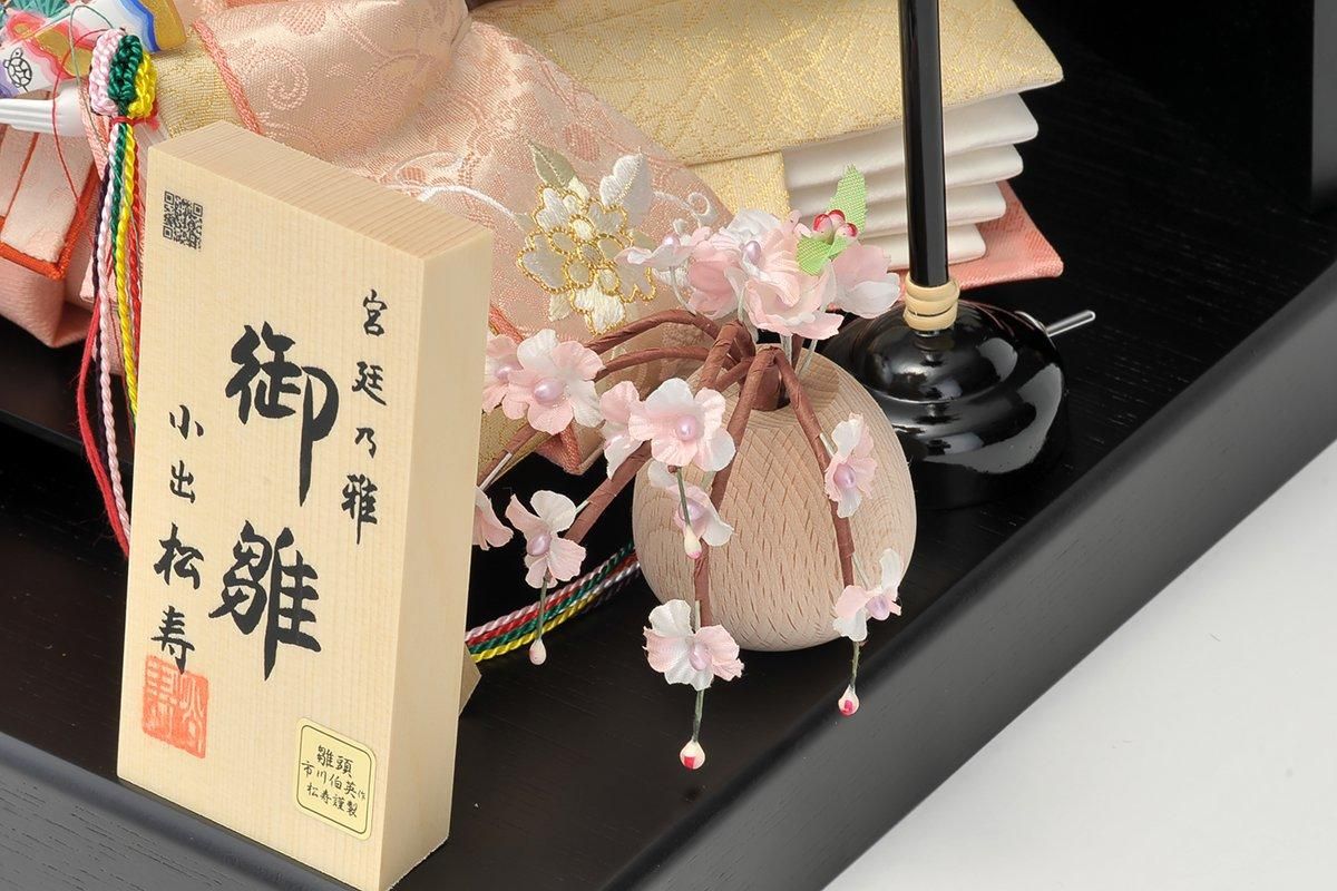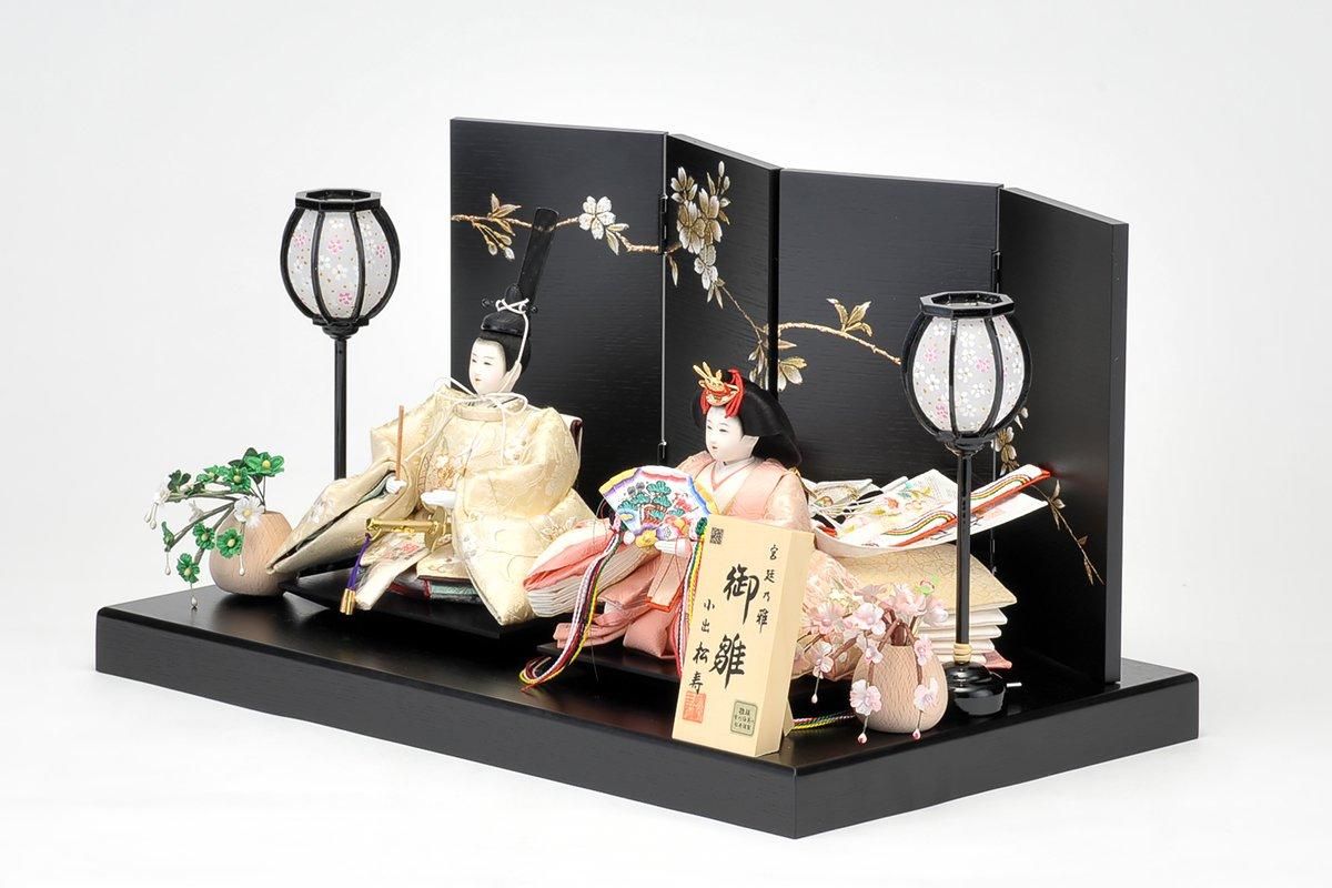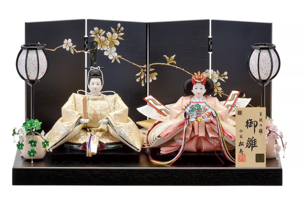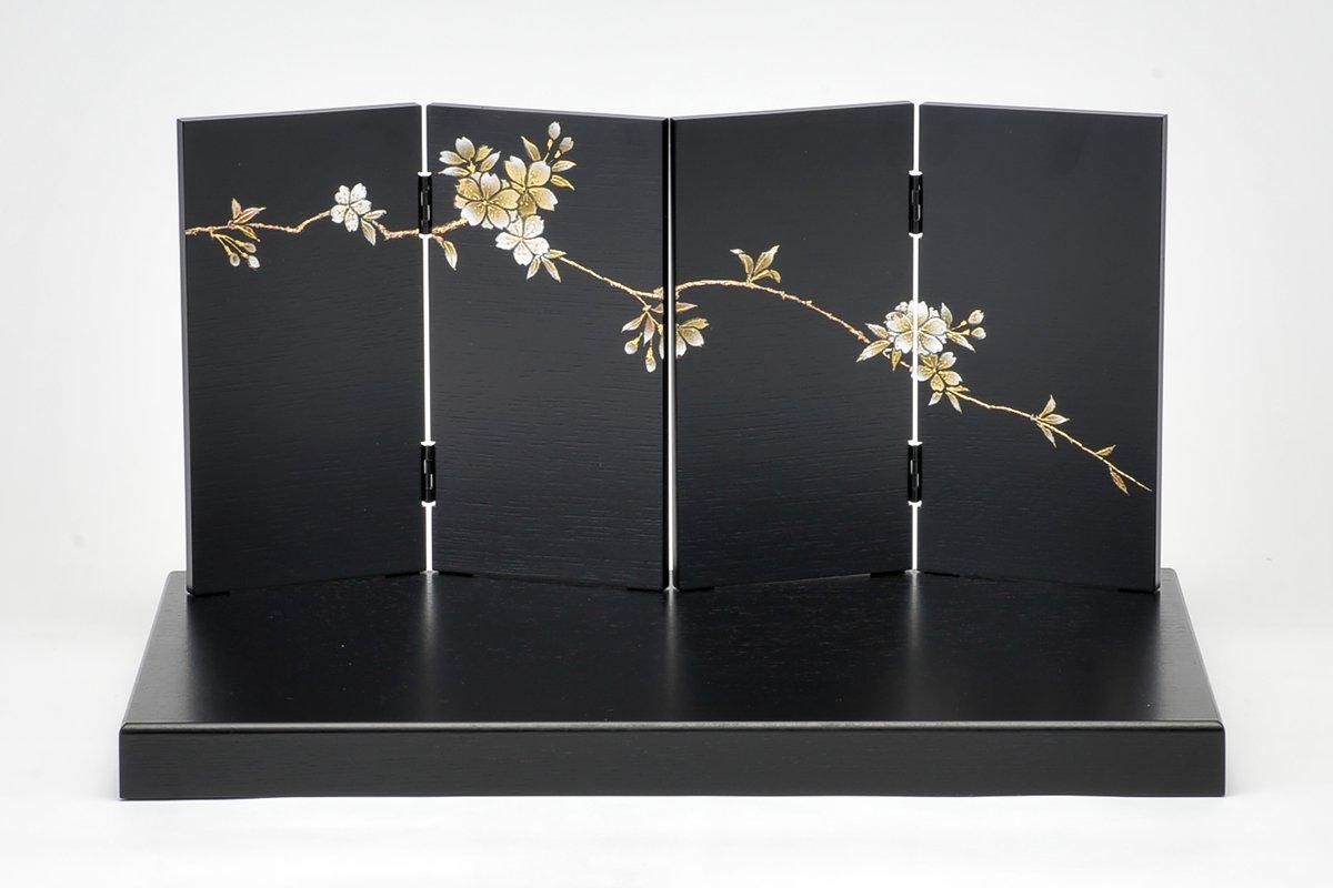 しだれ桜の金銀蒔絵が可愛い屏風を小出松寿のお雛様に組み合わせました。