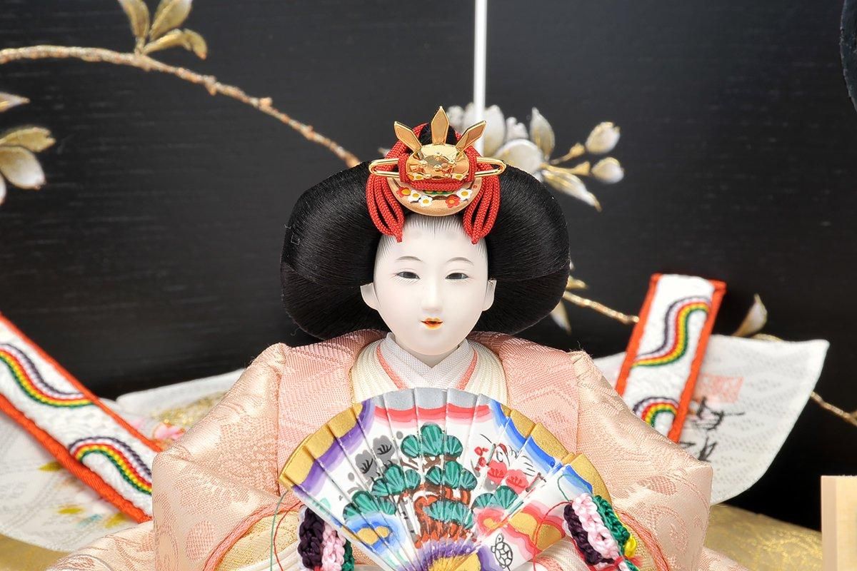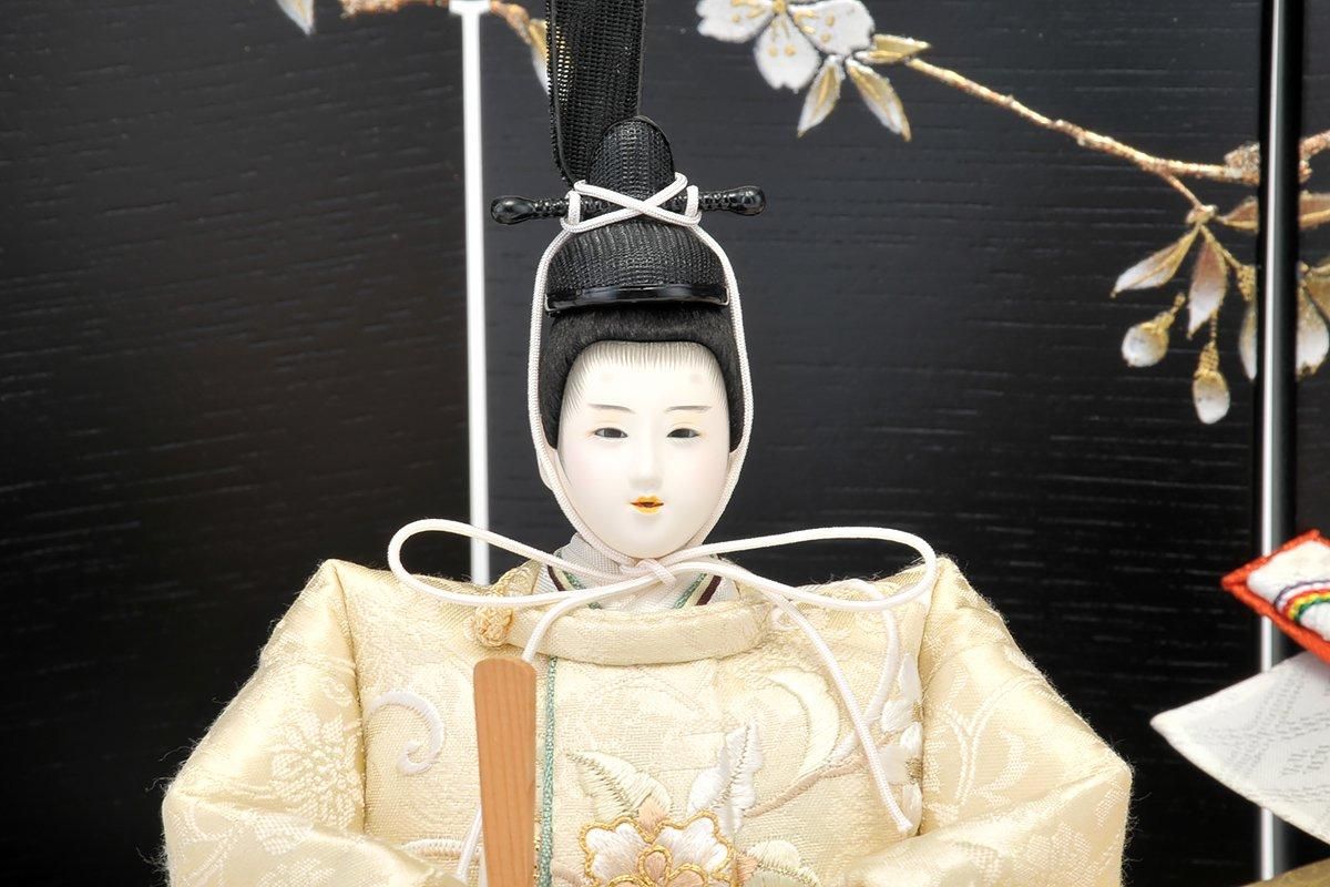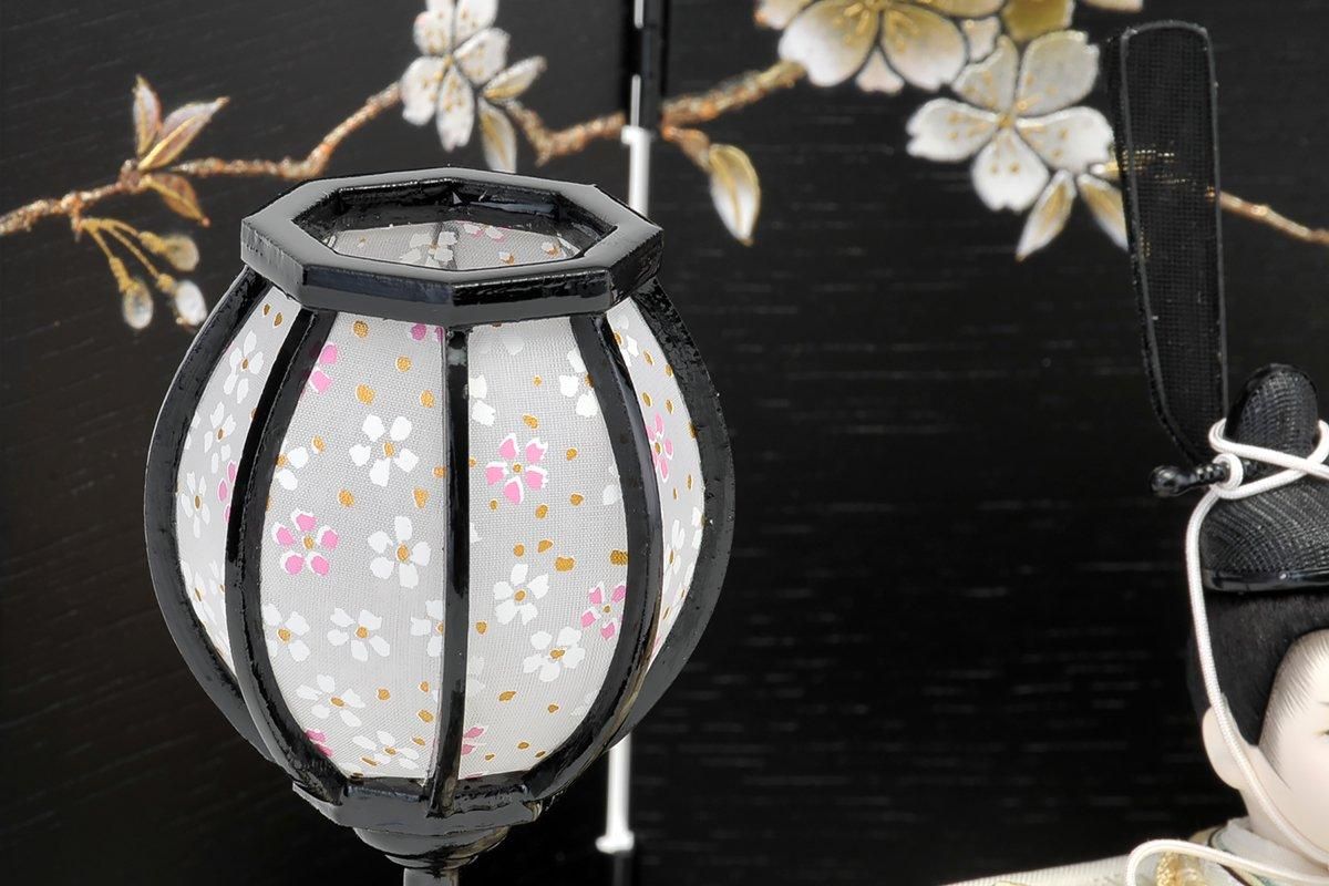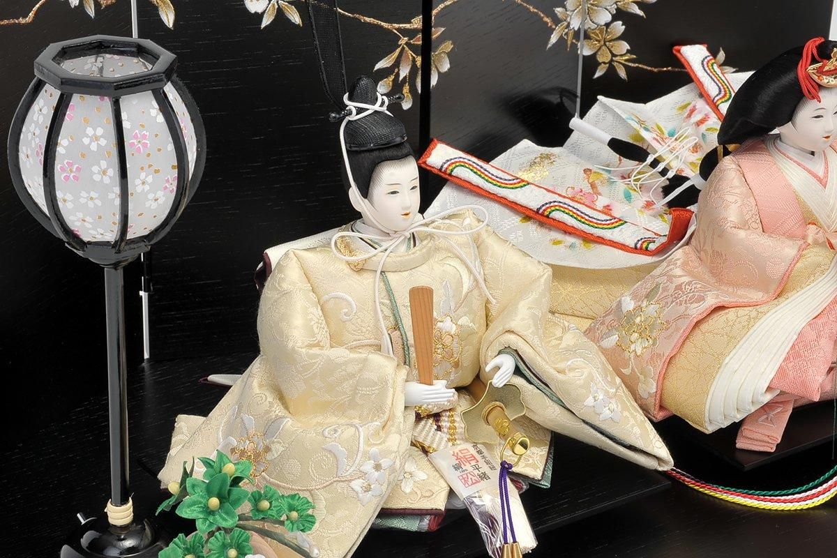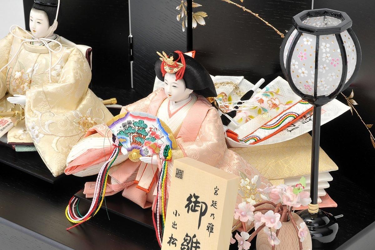しだれ桜の金銀蒔絵が可愛い屏風を小出松寿のお雛様に組み合わせました。
