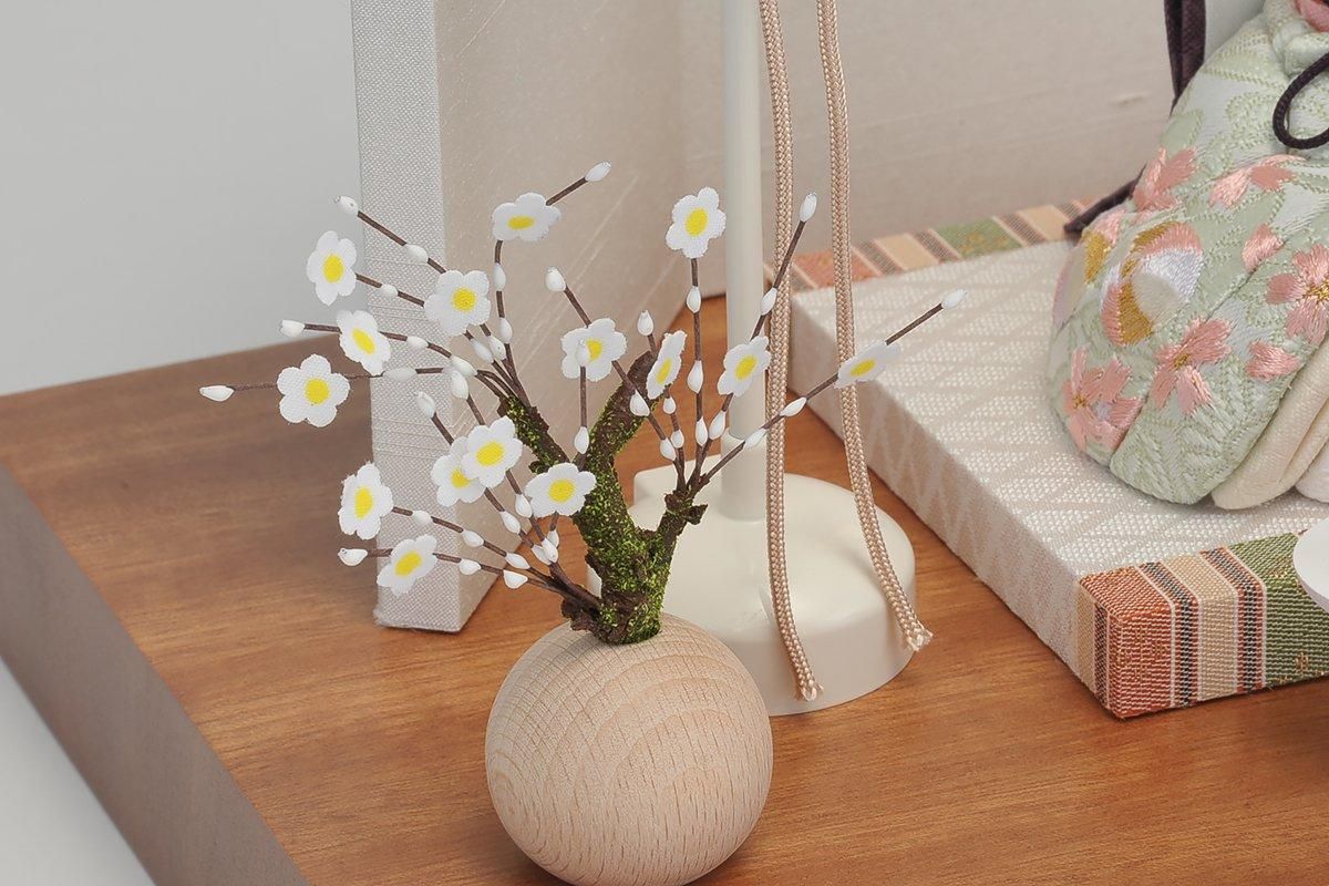 鞠は長い糸で作られることから「縁を結ぶ」「良縁に恵まれる」と考えられ、丸い形は「円満」「物事が丸く収まる」等、縁起のよい絵柄として古来より用いられてきました。 ナチュラルな木台に高岡塗り白台を合わせた飾り台と白布地に高岡塗りの金箔プレートを組み合わせた屏風のセットです。