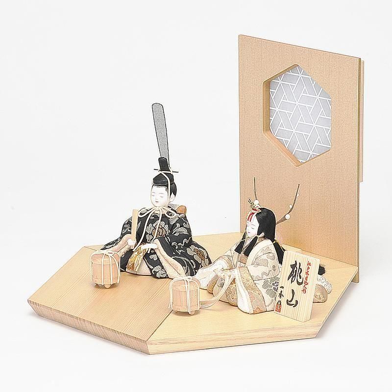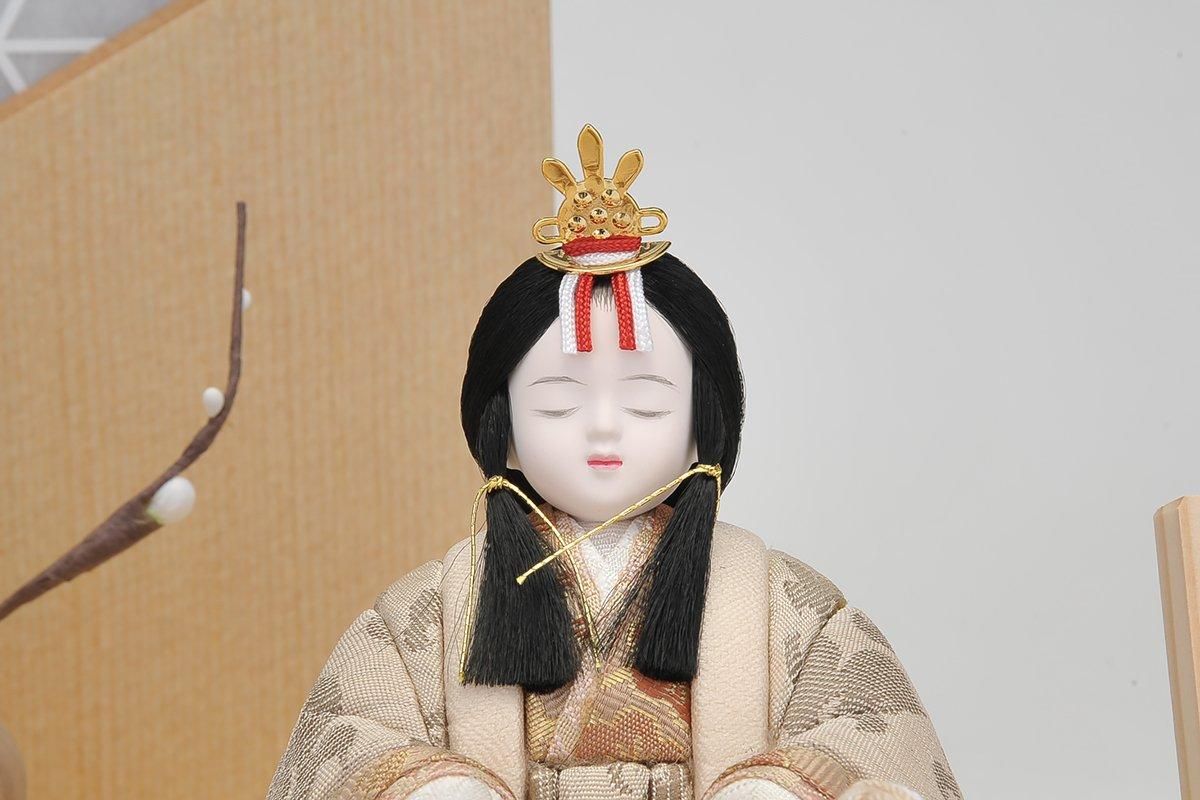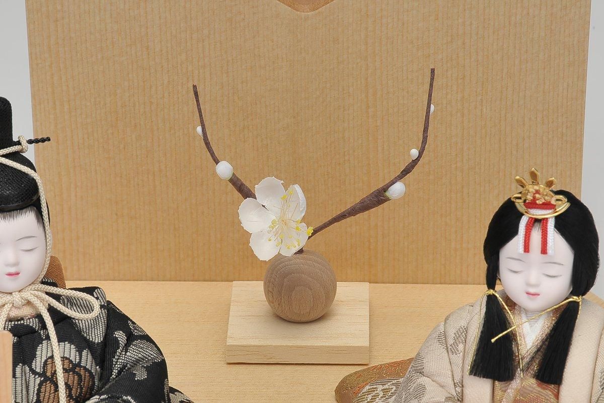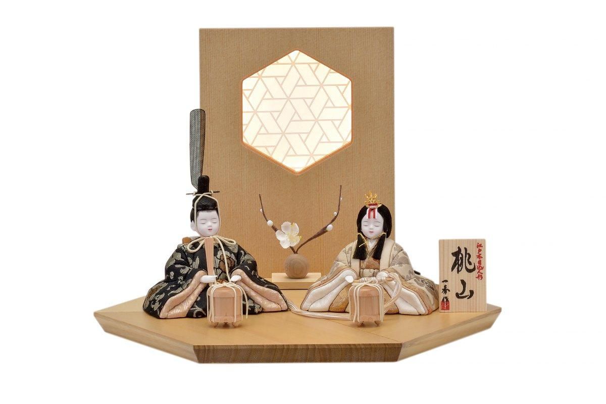 落ち着いた色合いの衣裳と木目調の衝立・飾り台の雰囲気がマッチしていると大変ご好評をいただいていおります。 衝立にはLEDライトが灯ります。幅35cmと大変コンパクトで置く場所が困ることもないはずです。