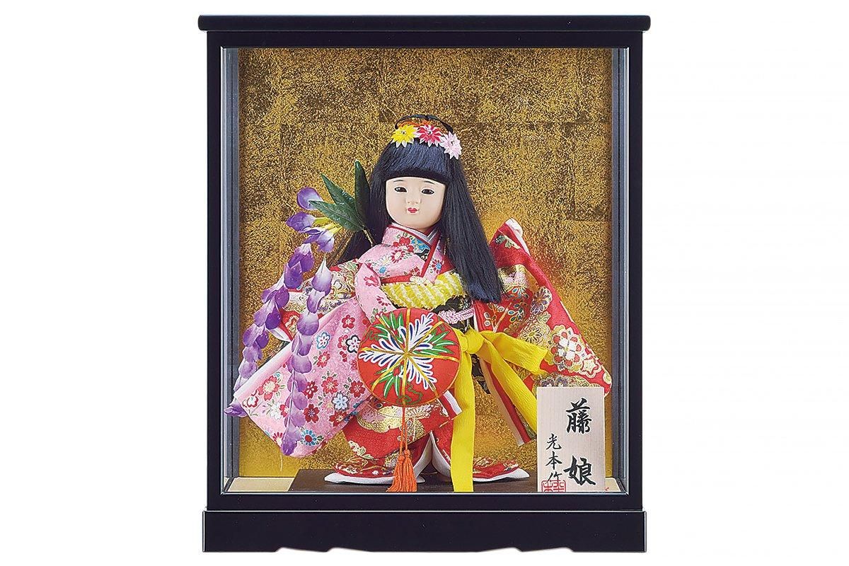光本作藤娘戸付ケース入り日本人形 お祝い脇飾り