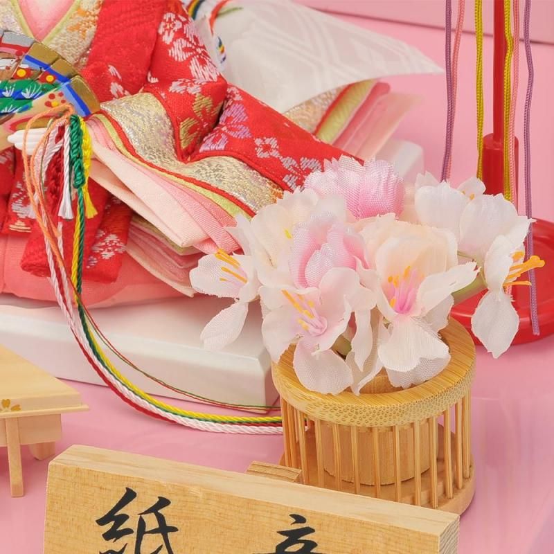 コンパクトでお値打ちなかわいらしい人気のセットです。写真のようにつるし飾りをサイドにセットすると華やかさが一層増します。