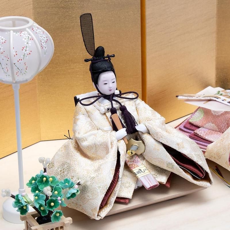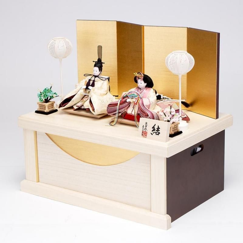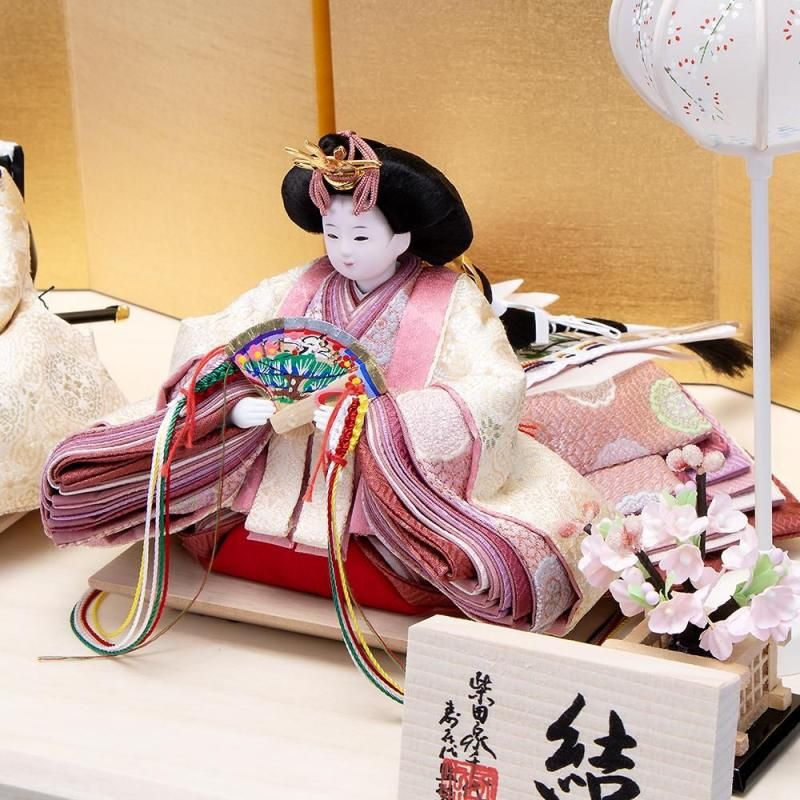 正絹吉祥文様の帯地衣裳は毎年人気が高く、特にこの結シリーズのお雛様はコンパクトに飾れてつくりにこだわっていることから大変好評をいただいております。