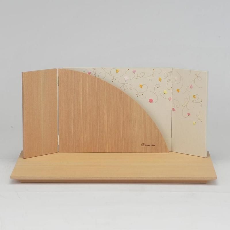 花柄の手刺繍を施した屏風にはLEDの間接照明が仕込まれていてモダンテイストが人気です。屏風と飾り台は木目調になっているためモダンなリビングにも合わせやすいセットです。