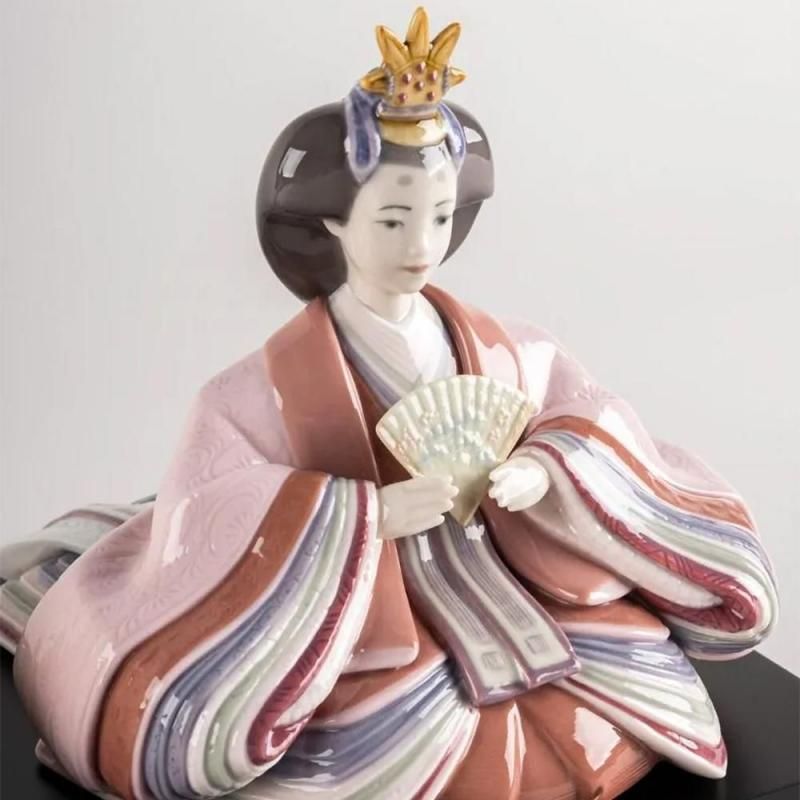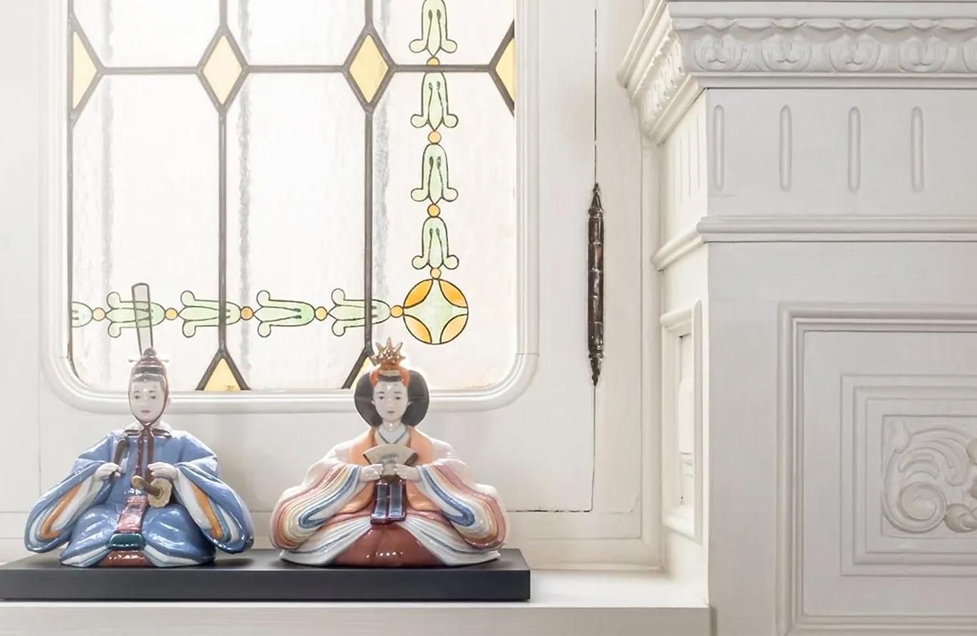 スペイン・バレンシアに本拠を構える磁器ブランド。 繊細な造形と淡い色彩で知られるLLADROは、日本の伝統文化への敬意を込めて、雛人形の制作にも取り組んでいます。磁器とは思えないほど柔らかな質感と、手仕事による温かみが特徴。西洋的な美意識と日本の古典美を融合させた造形は、モダンな住空間にも自然に馴染みます。扇や装束の細部に至るまで丁寧に仕上げられた親王飾りは、インテリアとしても高い評価を受けています。