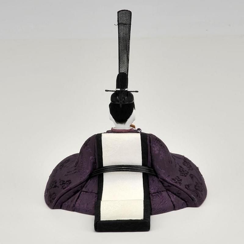 雲鶴文様とは、流れる雲の中から鶴が飛翔する姿を表した文様です。平安時代から最高位の装束に使われた格式高い文様で、優れて抜きんでた人格を表し、幸福や長寿、富貴を授ける意味が込められています。木目込人形では珍しくお姫様の裾には引き腰が飾り付けられています。