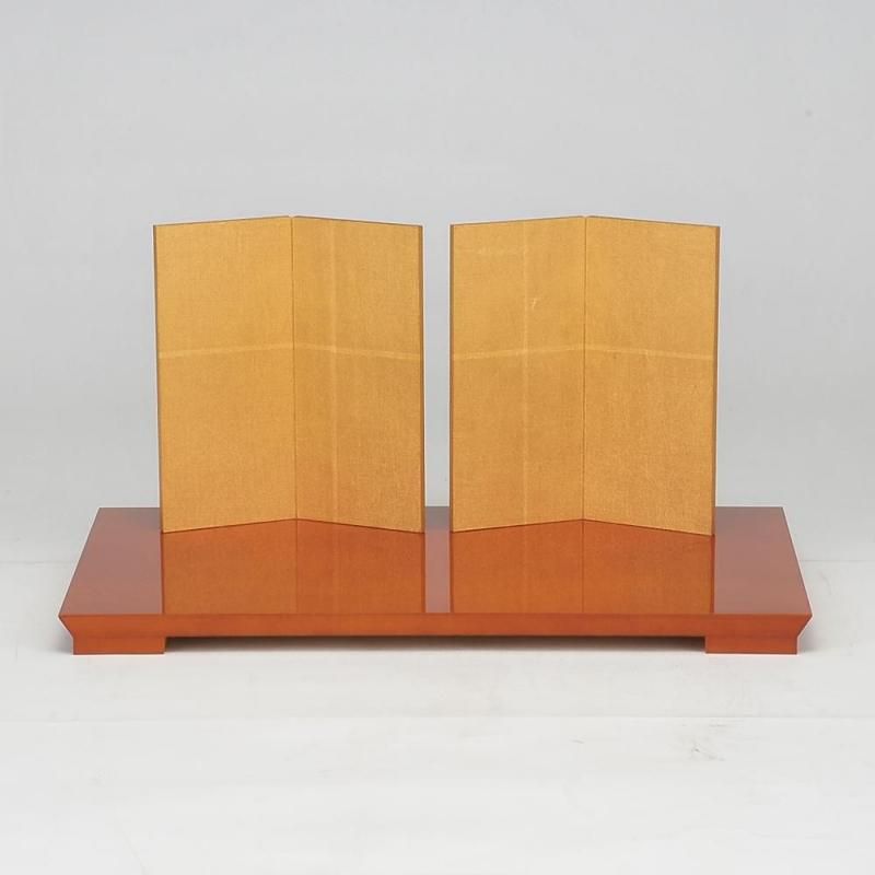 衝立や飾り台には和紙を使い優しい雰囲気を表現しています。両サイドの行灯はLEDライトの灯りが灯ります。