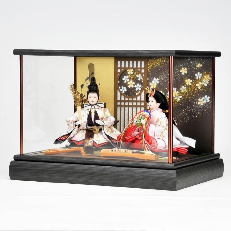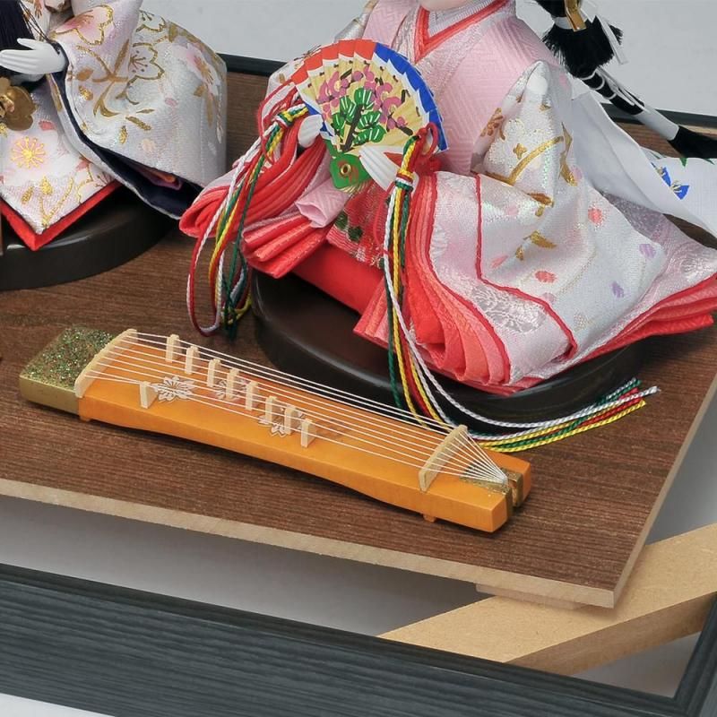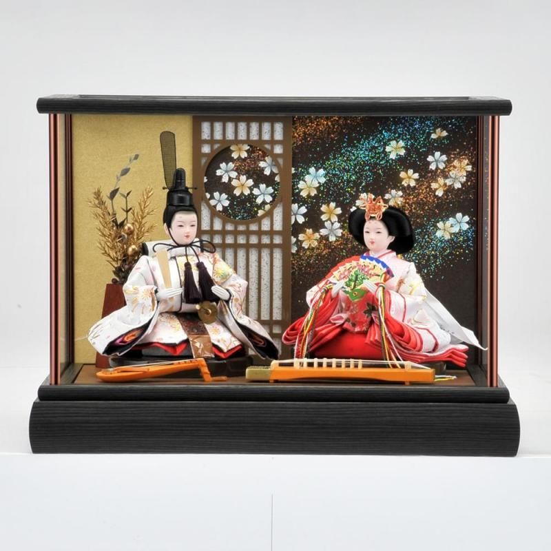 お人形にホコリが付かず出し入れ、仕舞い込みも簡単なケース飾りです。ケースに人形などが固定されています。