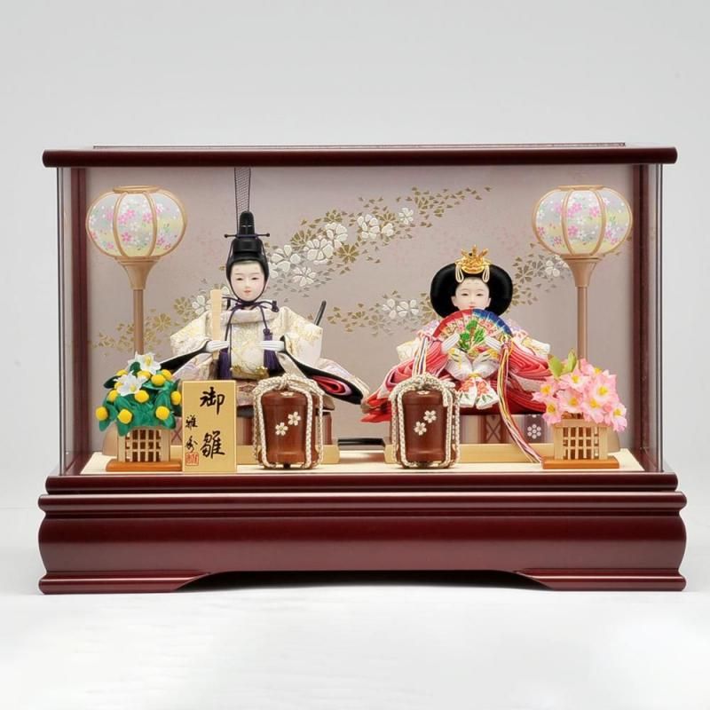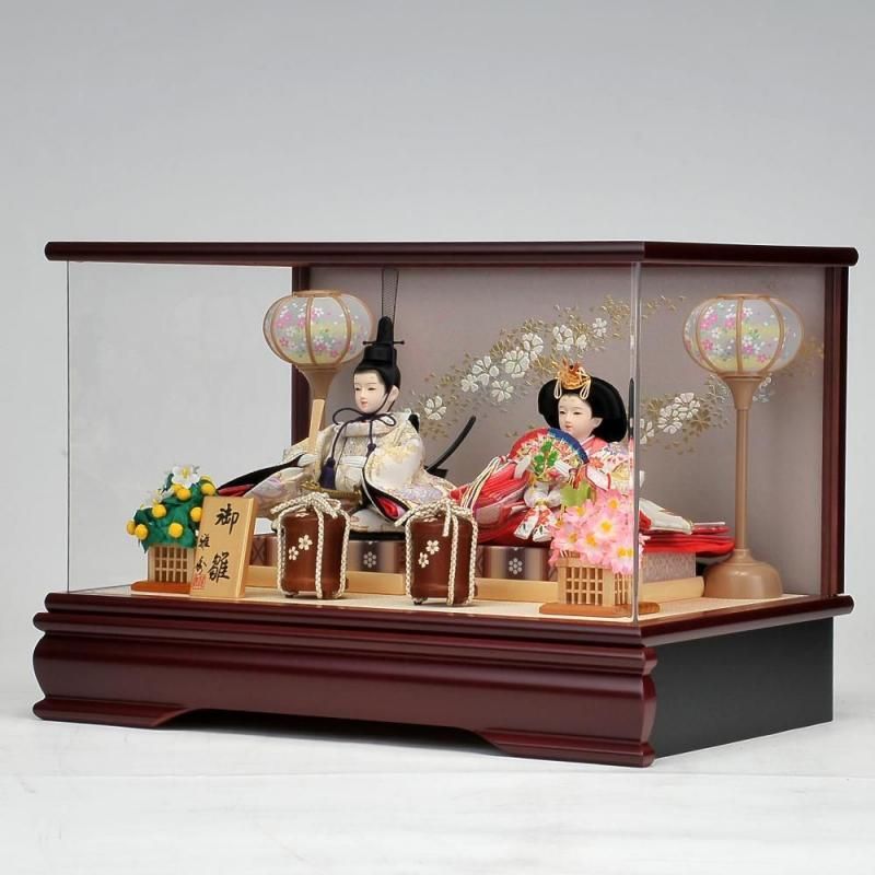 お人形にホコリが付かず出し入れ、仕舞い込みも簡単なケース飾りです。ケースに人形などが固定されています。