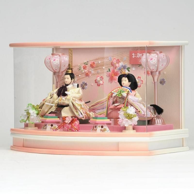 お人形にホコリが付かず出し入れ、仕舞い込みも簡単なケース飾りです。ケースに人形などが固定されています。