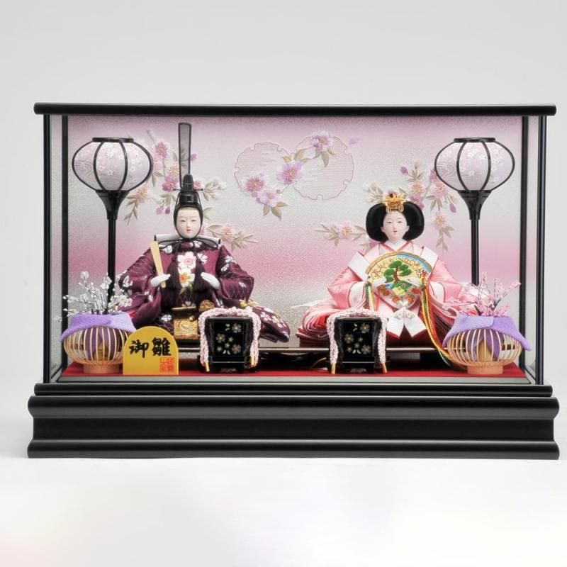 お人形にホコリが付かず出し入れ、仕舞い込みも簡単なケース飾りです。ケースに人形などが固定されています。