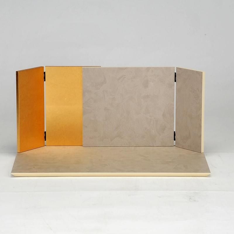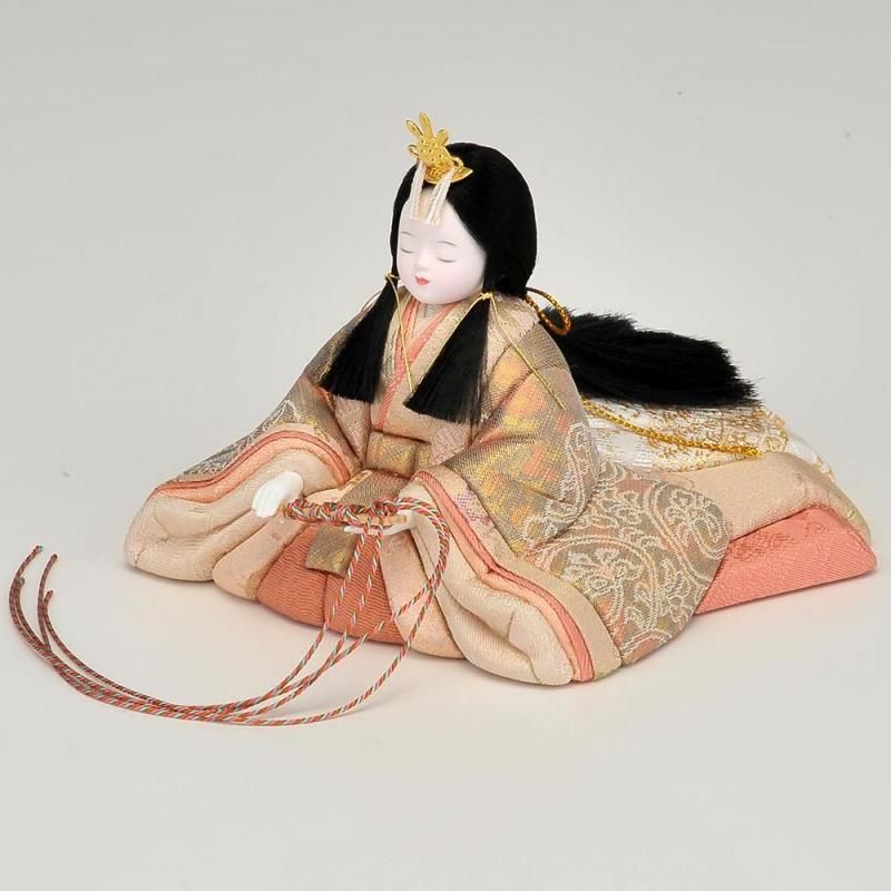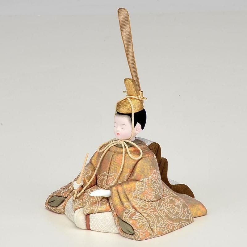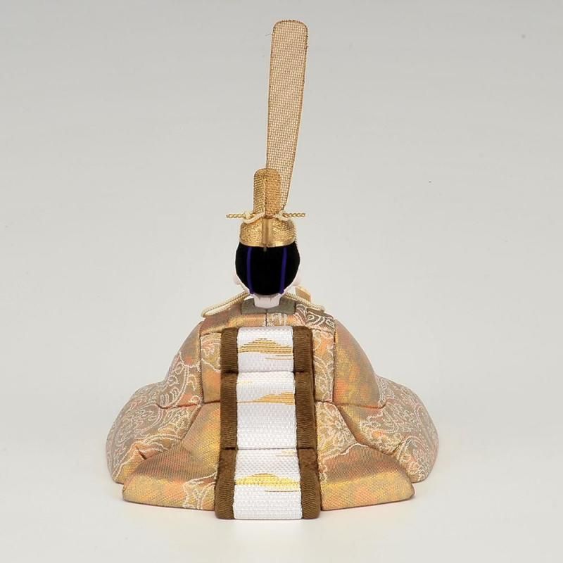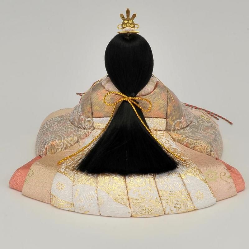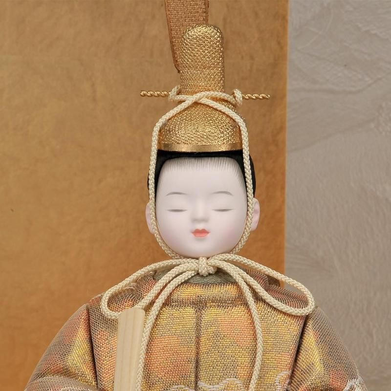 マーブル調の珍しい衣裳が魅力です。お顔の表情が優しく癒してくれます。屏風の向って左が金箔を使いモダンな印象を受けます。全体的に落ち着いたトーンでまとまっていますので永く飾っても飽きの来ないセットです。