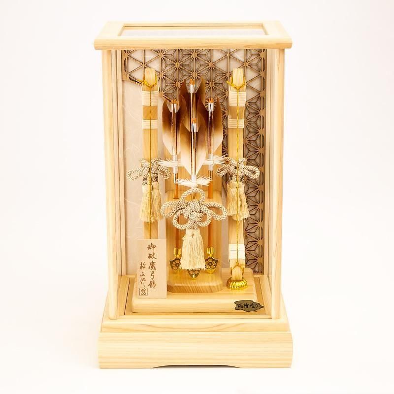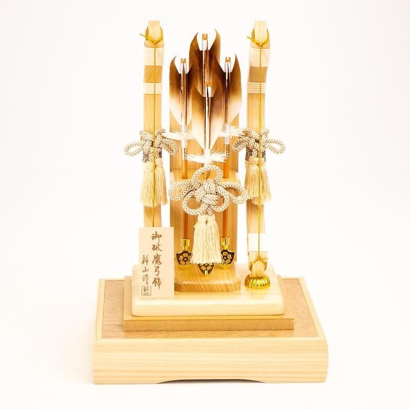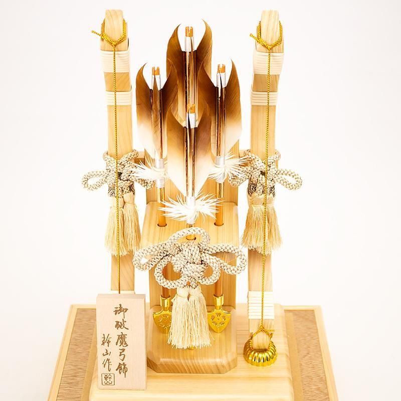 破魔弓は魔除けの意味で神社などで、かなり古くから用いられてきました。朝廷では、皇子が誕生したときに魔除けとして弓矢を用いて鳴弦の儀式を行っていました。 江戸時代には武家や町人の間に破魔弓を飾る習慣が生まれ、それが全国に広まりました。正月に破魔弓を飾るのは、こうした伝統にもとづくもので破魔弓が悪魔を追い払い、男の子が健やかに育つようにとの願いが込められています。