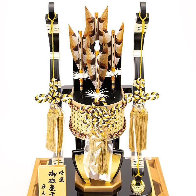 破魔弓は魔除けの意味で神社などで、かなり古くから用いられてきました。朝廷では、皇子が誕生したときに魔除けとして弓矢を用いて鳴弦の儀式を行っていました。 江戸時代には武家や町人の間に破魔弓を飾る習慣が生まれ、それが全国に広まりました。正月に破魔弓を飾るのは、こうした伝統にもとづくもので破魔弓が悪魔を追い払い、男の子が健やかに育つようにとの願いが込められています。