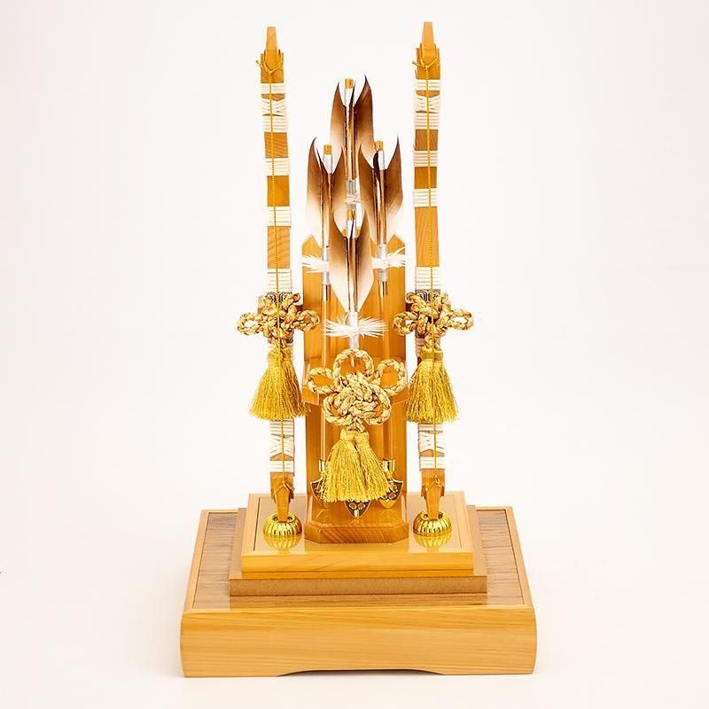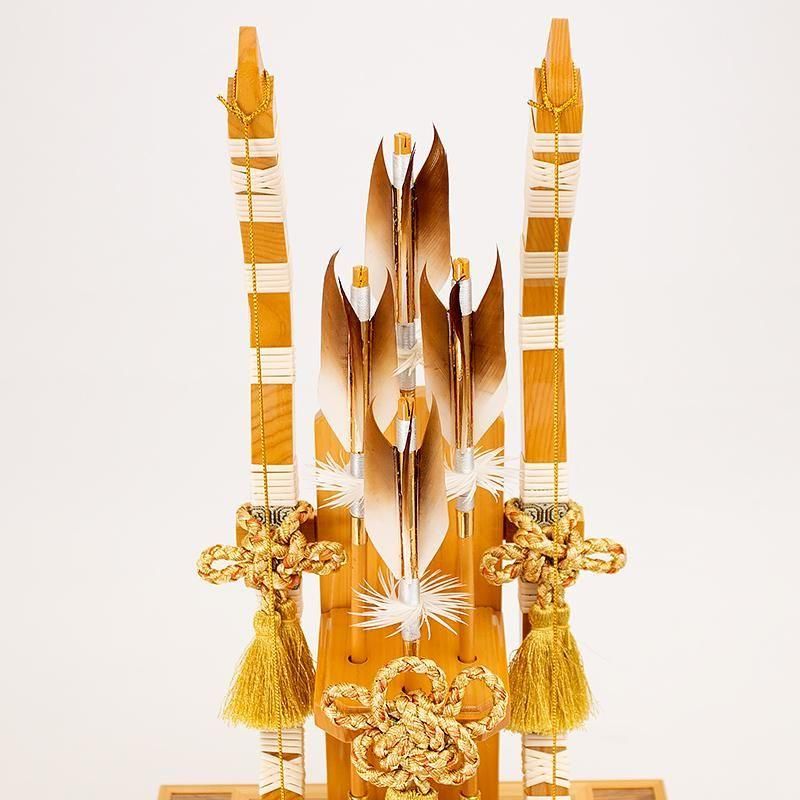 破魔弓は魔除けの意味で神社などで、かなり古くから用いられてきました。朝廷では、皇子が誕生したときに魔除けとして弓矢を用いて鳴弦の儀式を行っていました。 江戸時代には武家や町人の間に破魔弓を飾る習慣が生まれ、それが全国に広まりました。正月に破魔弓を飾るのは、こうした伝統にもとづくもので破魔弓が悪魔を追い払い、男の子が健やかに育つようにとの願いが込められています。