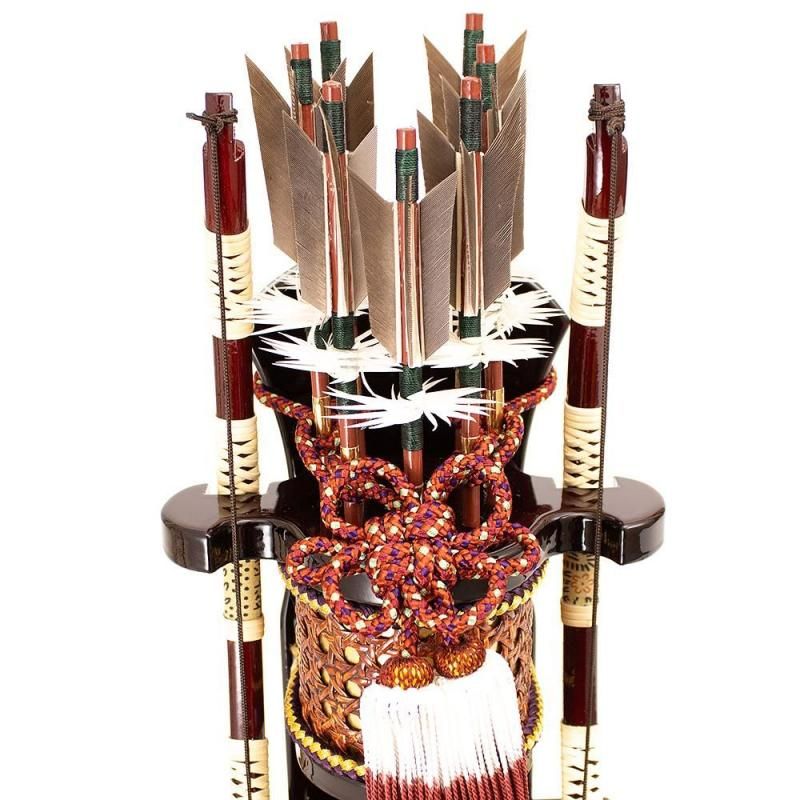 破魔弓は魔除けの意味で神社などで、かなり古くから用いられてきました。朝廷では、皇子が誕生したときに魔除けとして弓矢を用いて鳴弦の儀式を行っていました。 江戸時代には武家や町人の間に破魔弓を飾る習慣が生まれ、それが全国に広まりました。正月に破魔弓を飾るのは、こうした伝統にもとづくもので破魔弓が悪魔を追い払い、男の子が健やかに育つようにとの願いが込められています。