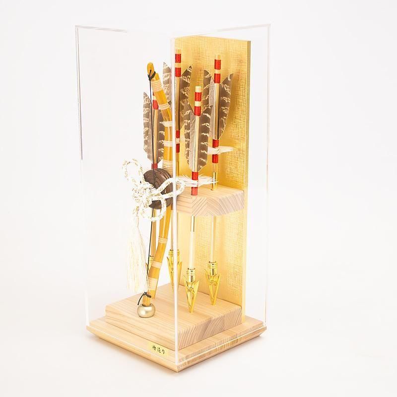 破魔弓は魔除けの意味で神社などで、かなり古くから用いられてきました。朝廷では、皇子が誕生したときに魔除けとして弓矢を用いて鳴弦の儀式を行っていました。 江戸時代には武家や町人の間に破魔弓を飾る習慣が生まれ、それが全国に広まりました。正月に破魔弓を飾るのは、こうした伝統にもとづくもので破魔弓が悪魔を追い払い、男の子が健やかに育つようにとの願いが込められています。