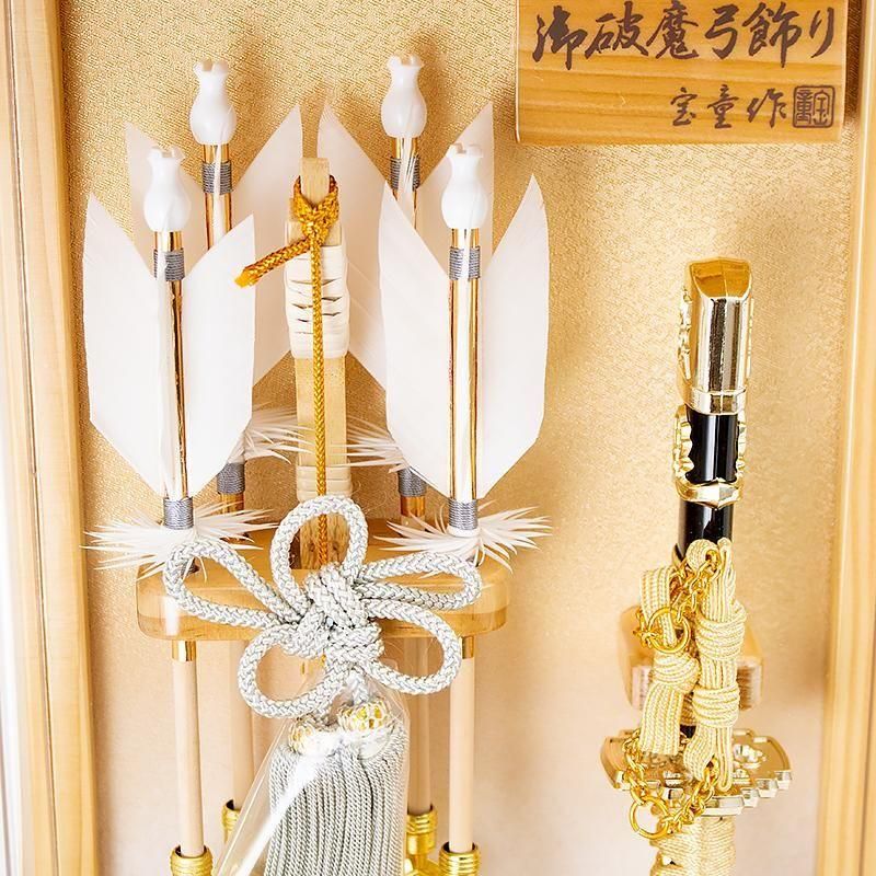 破魔弓は魔除けの意味で神社などで、かなり古くから用いられてきました。朝廷では、皇子が誕生したときに魔除けとして弓矢を用いて鳴弦の儀式を行っていました。 江戸時代には武家や町人の間に破魔弓を飾る習慣が生まれ、それが全国に広まりました。正月に破魔弓を飾るのは、こうした伝統にもとづくもので破魔弓が悪魔を追い払い、男の子が健やかに育つようにとの願いが込められています。