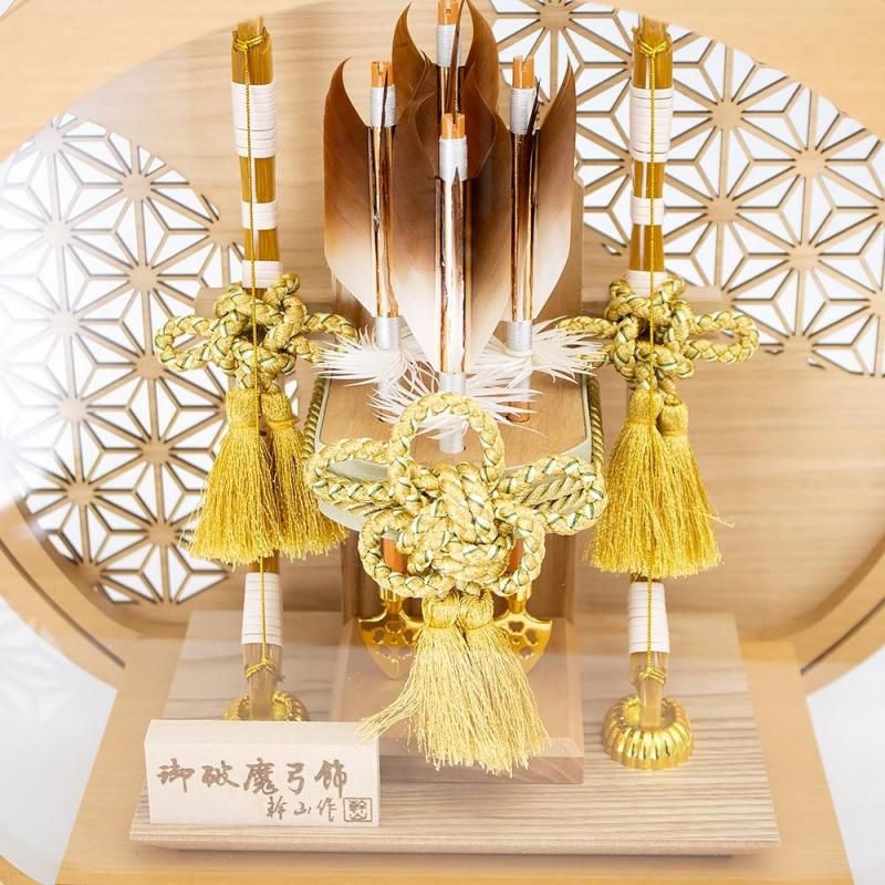 破魔弓は魔除けの意味で神社などで、かなり古くから用いられてきました。朝廷では、皇子が誕生したときに魔除けとして弓矢を用いて鳴弦の儀式を行っていました。 江戸時代には武家や町人の間に破魔弓を飾る習慣が生まれ、それが全国に広まりました。正月に破魔弓を飾るのは、こうした伝統にもとづくもので破魔弓が悪魔を追い払い、男の子が健やかに育つようにとの願いが込められています。